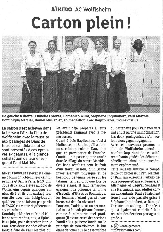 Un immense succès Pour la seconde année consécutive, Domenico Muni, professeur à Molsheim et fraîchement promu Quatrième Dan, a invité son professeur Paul Matthis 5è Dan au dojo des Atalantes pour un échange exceptionnel entre les clubs de Molsheim et Wolfisheim. La formule a connu un succès immense puisque plus de quarante aïkidokas des deux…