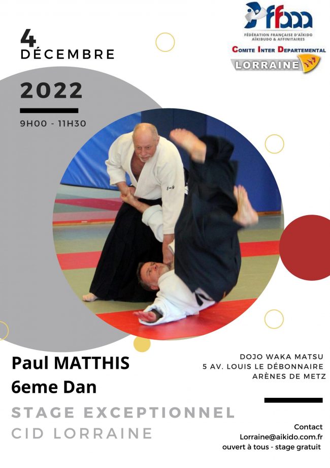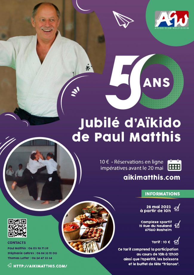 LienZoomDétails Jubilé 50 ans d’Aïkido de Paul MatthisStagesPar Thomas22 février 2023le 28 mai à partir de 10h Au complexe sportif du Neuland à Rosheim